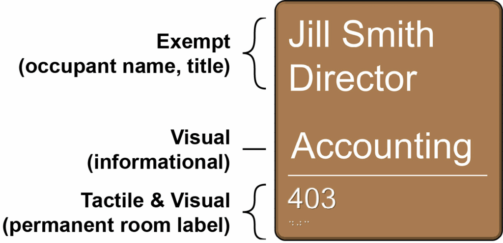 • Braille on permanent room identification signs (restrooms, offices, fellowship hall)