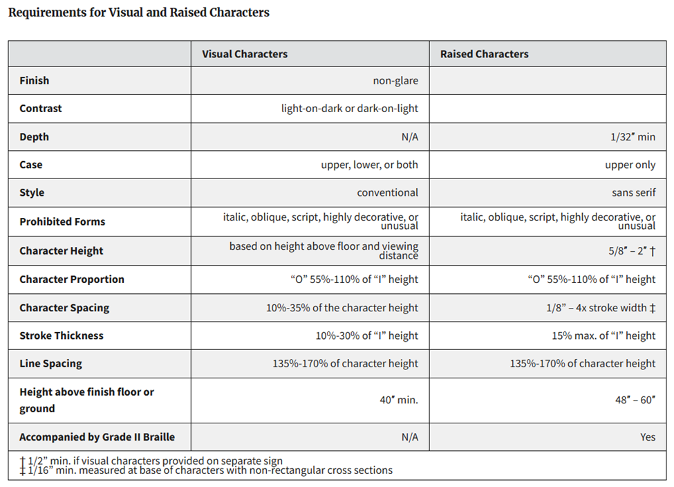 • Sans-serif, non-decorative fonts (ADA 703.5 guidelines)