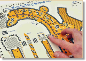 Tactile signage also benefits people with limited vision due to lighting glare or aging.